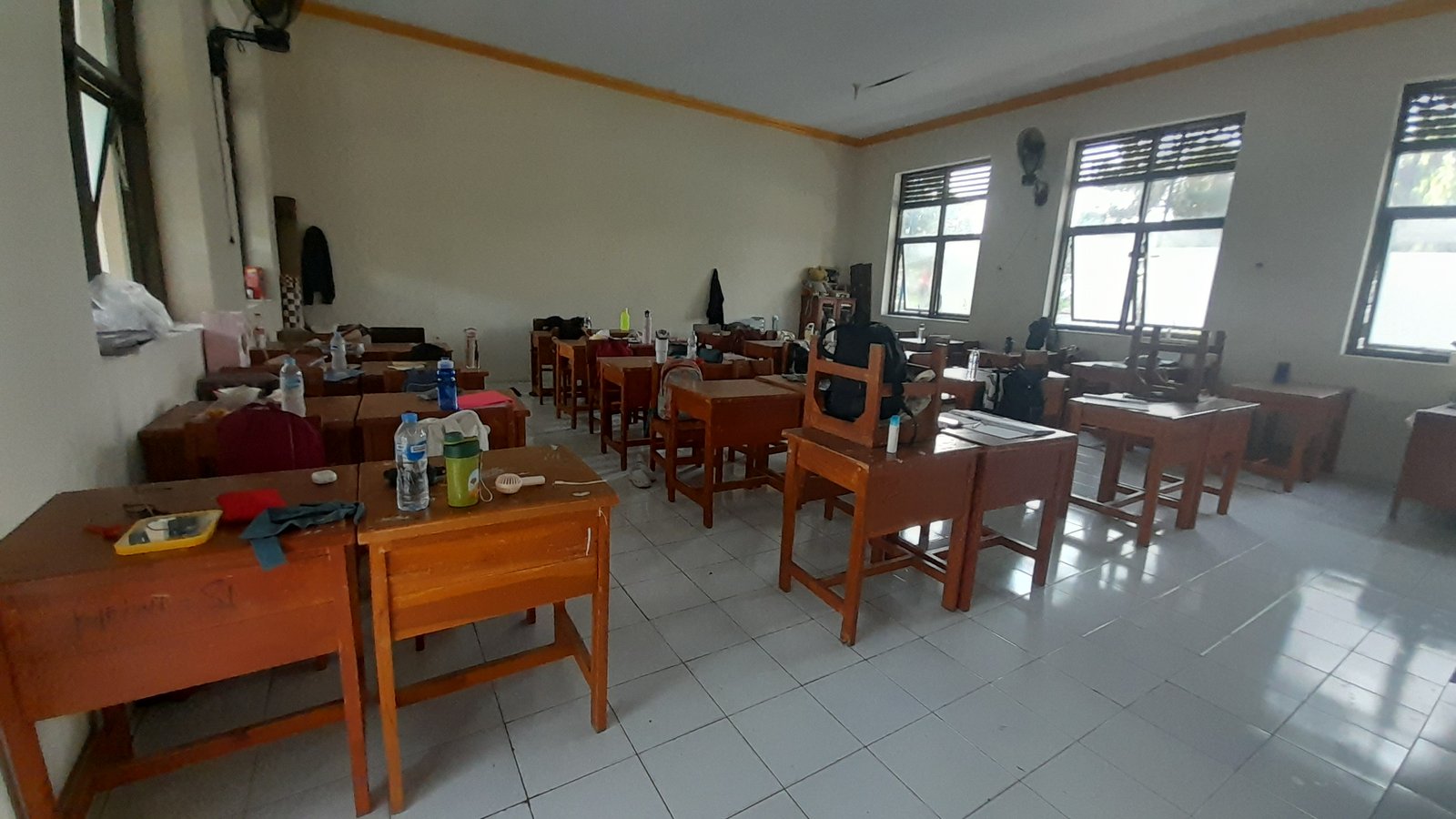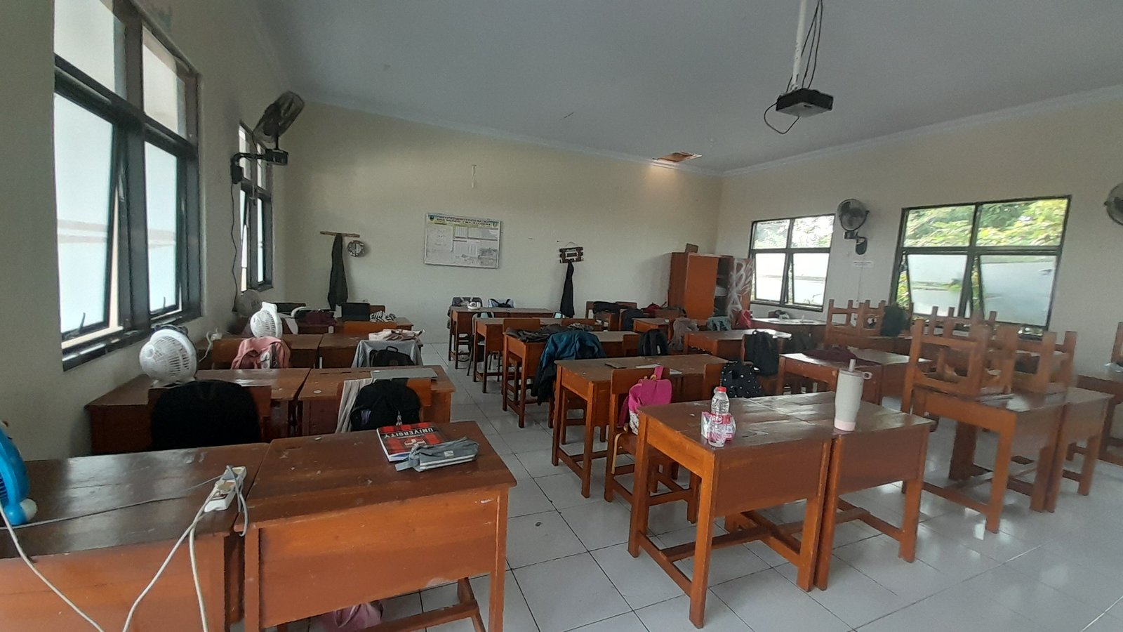 Kelengkapan kelas tidak ada , ada bekas tanah juga tidak disapu